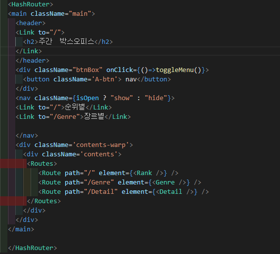참고로 라우트 된 컴포넌트에서 또 라우트를 쓰면 중복이 되어 오류가 뜬다.